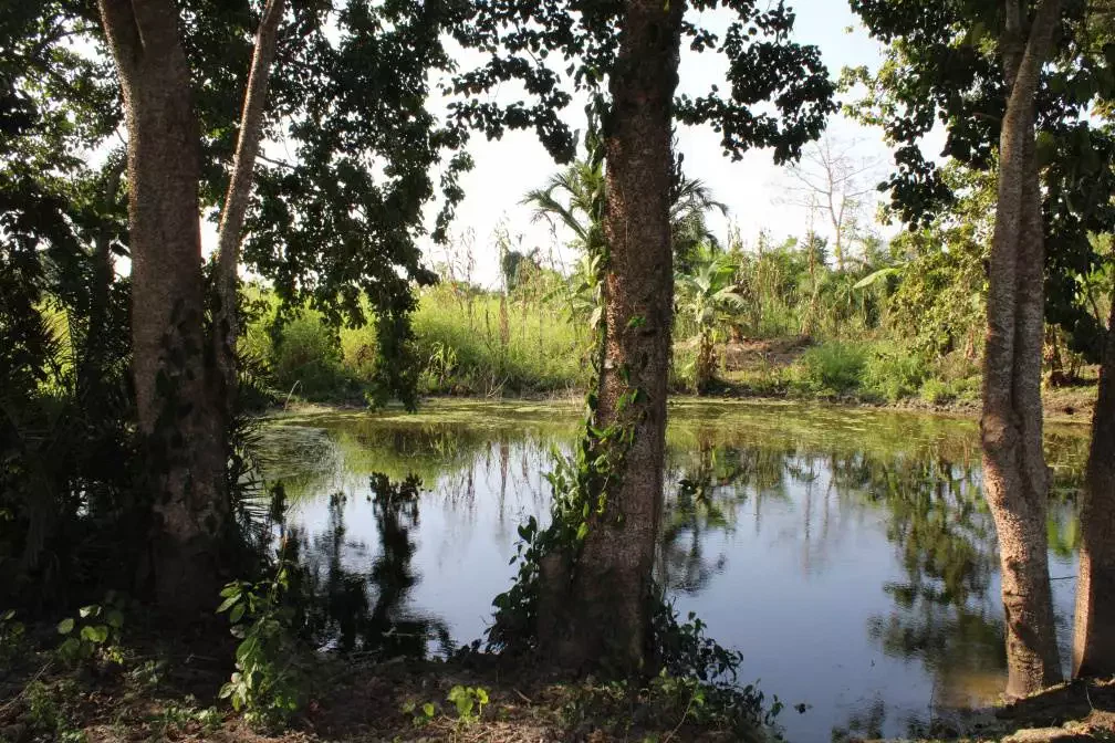 Les points d’eau stagnants non protégés, ici à proximité de Pobè, semblent favoriser le risque de contamination par Mycobacterium ulcerans. ©Fondation Raoul Follereau