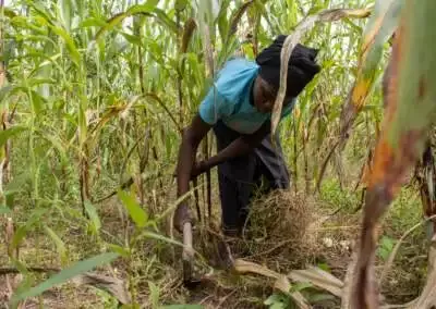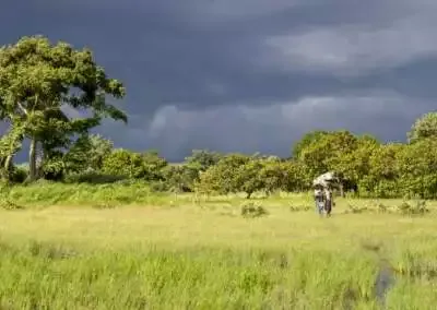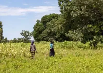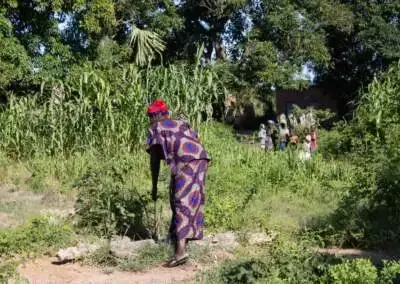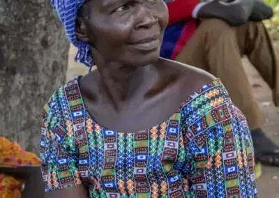 « Avec ces mains, comment je peux faire pour aider ma maman ? » s’inquiète Gisèle, « ce qui est difficile ici, c’est de trouver à manger. Tous les jours je pars dans la brousse avec elle pour trouver à manger ». Veuve, Rebecca porte seule, avec détermination, le souci des six enfants vivant encore chez elle. Autour de la concession, s’étendent les champs de sésame, de mil rouge et de riz cultivés par Rebecca et les siens – des champs piétinés chaque année par les troupeaux venus du nord lors de leurs transhumances. Au petit matin, Gisèle balaie la cour et puise l’eau puis, munie de sa houe, elle part sarcler les plants de gombo, d’oseille ou de mil, le corps souvent endolori par la chaleur.