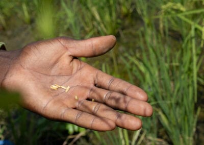 « Cette ferme a été créée pour aider les anciens malades de la lèpre à se réinsérer, à sortir de la mendicité et à se prendre en charge » explique Abraham Gayan. Chaque année en mai, il rassemble les anciens malades de la lèpre vivant, à quelques kilomètres de la ferme, dans le quartier d’Habena, et leur propose de venir travailler avec lui pour la saison à venir – ils étaient 23 en 2024. Chacun se voit attribuer une parcelle de terrain et en tire des revenus pour sa famille. Abraham coordonne les travaux, s’assure de la sécurité du lieu, de l’irrigation des champs et des rizières.