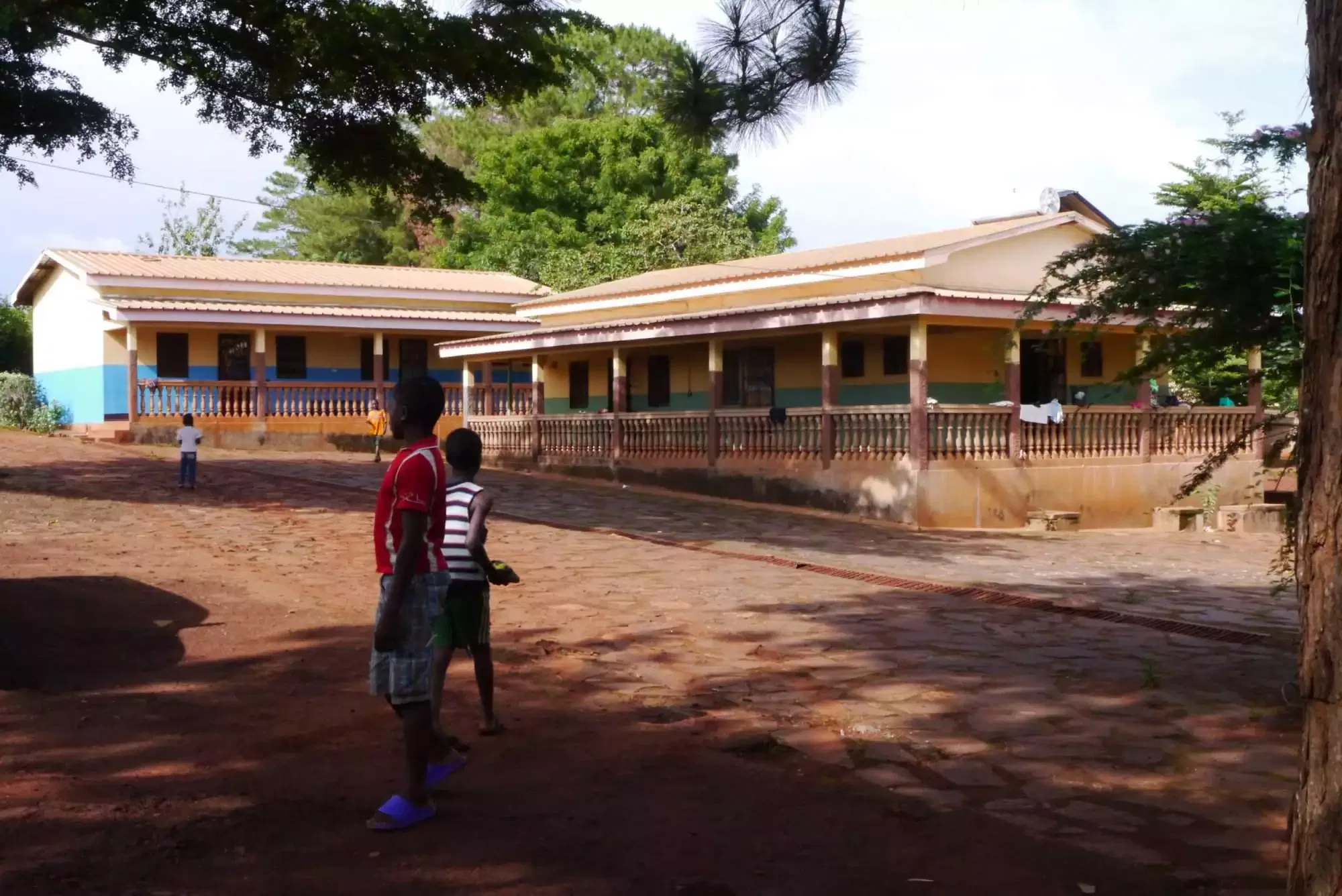 Des enfants devant le Foyer des Saints Anges Gardiens. © Fondation Raoul Follereau