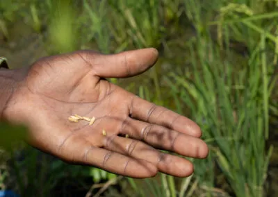 « Cette ferme a été créée pour aider les anciens malades de la lèpre à se réinsérer, à sortir de la mendicité et à se prendre en charge » explique Abraham Gayan. Chaque année en mai, il rassemble les anciens malades de la lèpre vivant, à quelques kilomètres de la ferme, dans le quartier d’Habena, et leur propose de venir travailler avec lui pour la saison à venir – ils étaient 23 en 2024. Chacun se voit attribuer une parcelle de terrain et en tire des revenus pour sa famille. Abraham coordonne les travaux, s’assure de la sécurité du lieu, de l’irrigation des champs et des rizières.