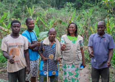 Le trajet est long à travers la forêt jusqu’au campement, mais dès qu’il le peut, Simplice N. aime rendre visite à son neveu et surveiller l’élevage. ©Marie-CapucineGaitte