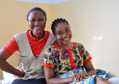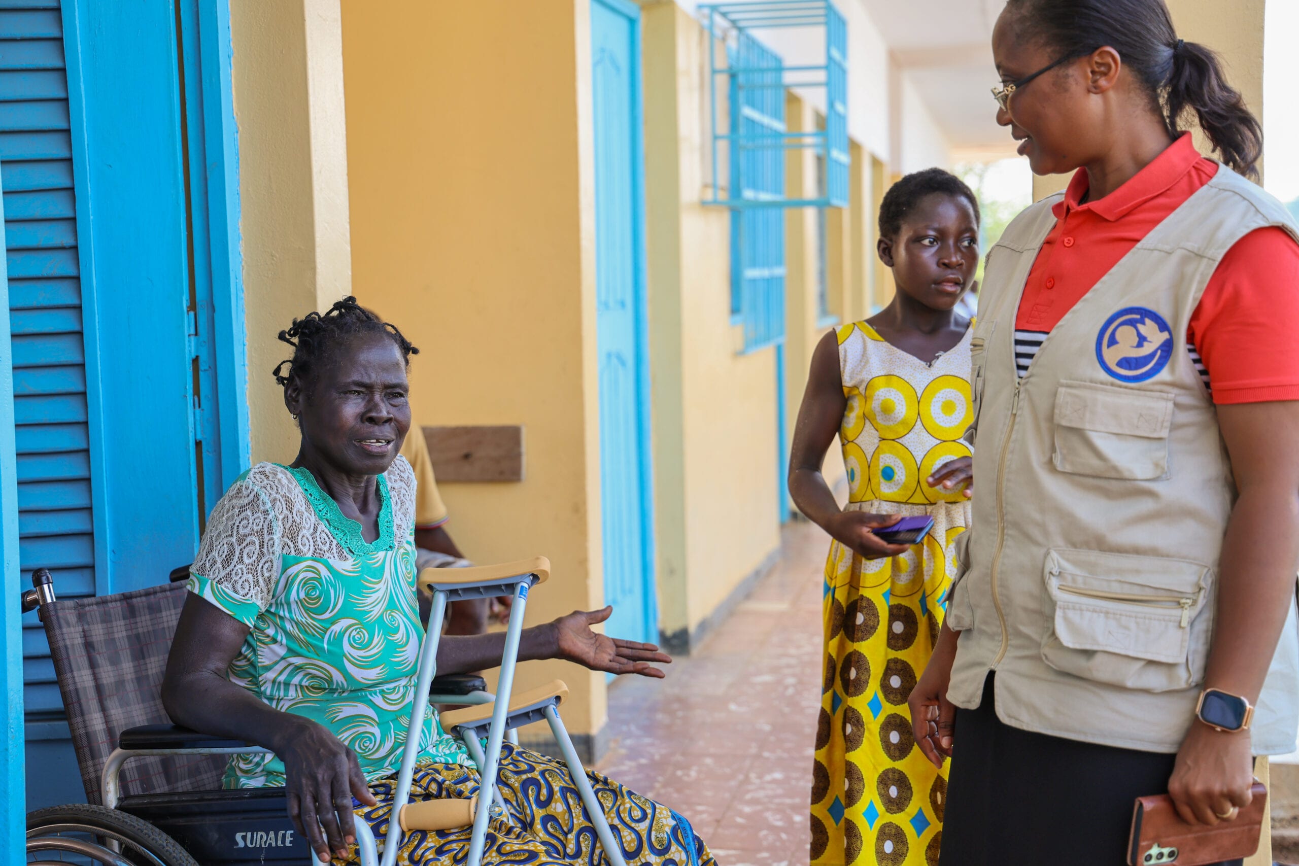 Pour bien des patients vivant à l’IRF d’Adzopé, l’arrivée de sœur Tano a marqué un tournant. Comme pour Soro, debout derrière elle. ©Marie-CapucineGaitte