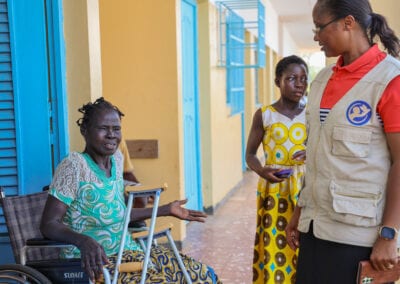 Sœur Tano Akoua travaille comme assistante sociale du programme national de lutte contre l’ulcère de Buruli de Côte d’Ivoire (PNLUB-MCUE), avec le soutien de la Fondation Raoul Follereau. Infatigable, elle parcourt le territoire pour rendre visite aux malades de lèpre et des autres maladies tropicales négligées cutanées, dans les centres de traitement et dans leurs villages. L’objectif : aider ces personnes atteintes dans leur chair à retrouver une bonne estime d’elles-mêmes et à reprendre place dans la société. Son travail se décline de plusieurs manières : chaque année, elle sensibilise près de 2 000 patients sur l’estime de soi, la maladie et la réinsertion par le travail. Dans le même temps, l’assistante sociale se rend disponible, au quotidien, pour une centaine de malades ayant besoin d’un suivi particulier. Et les heures ne comptent pas : « Quand un patient s’avance vers vous, il a besoin de toute votre attention. Il y a des choses qu’ils ne disent à personne d’autre, et par moment le seul fait d’entendre votre voix, c’est déjà rassurant pour eux. Sachant ce besoin, je ne peux pas fermer la porte » confie-t-elle. Le travail étant colossal, une deuxième assistante sociale a rejoint sœur Tano, en avril 2024, pour assurer le suivi des malades dans la région de Divo, au sud-ouest du pays.