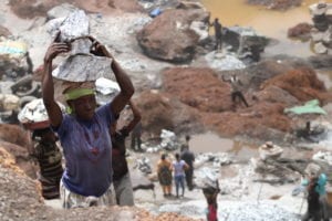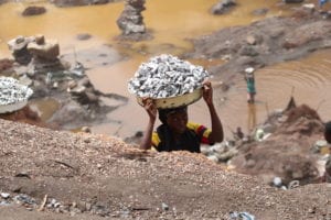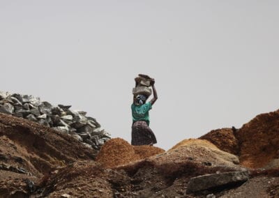 Une femme transportant des blocs hors du « trou ». © Marie-Charlotte Noulens – FRF