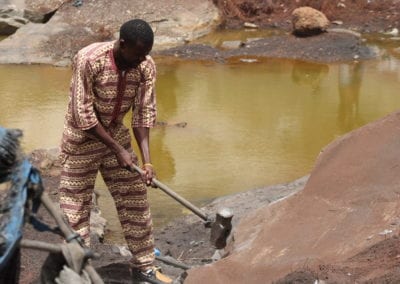 Au Burkina Faso, plus des deux cinquièmes des enfants âgés de 5 à 17 ans sont économiquement actifs, alors que le Code du travail interdit le travail des enfants de moins de 16 ans. Le pays est signataire de la Convention relative aux Droits de l’Enfant et de la Charte Africaine des Droits et du Bien-être de l’Enfant. En 2017, le gouvernement burkinabè a adopté un nouveau décret en appui au programme national de lutte contre le travail des enfants. Ce décret liste l’ensemble des travaux dangereux pour les enfants. « Le travail des enfants dans la carrière est défini et catégorisé dans la législation nationale comme relevant des travaux dangereux et il est donc interdit. L’article 5 du décret du 22 avril 2009 précise que l’interdiction du concassage de minerai est due aux ‘‘poussières nuisibles, blessures, postures inconfortables’’. »[2], explique Joséphine Wouango dans son travail de recherches. Dans les faits, rien n’empêche les enfants de venir travailler à la carrière. Ils s’exposent à de multiples dangers.