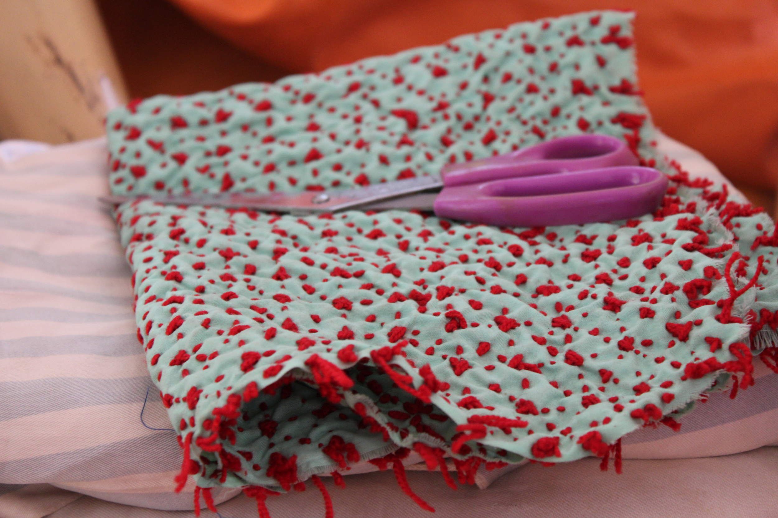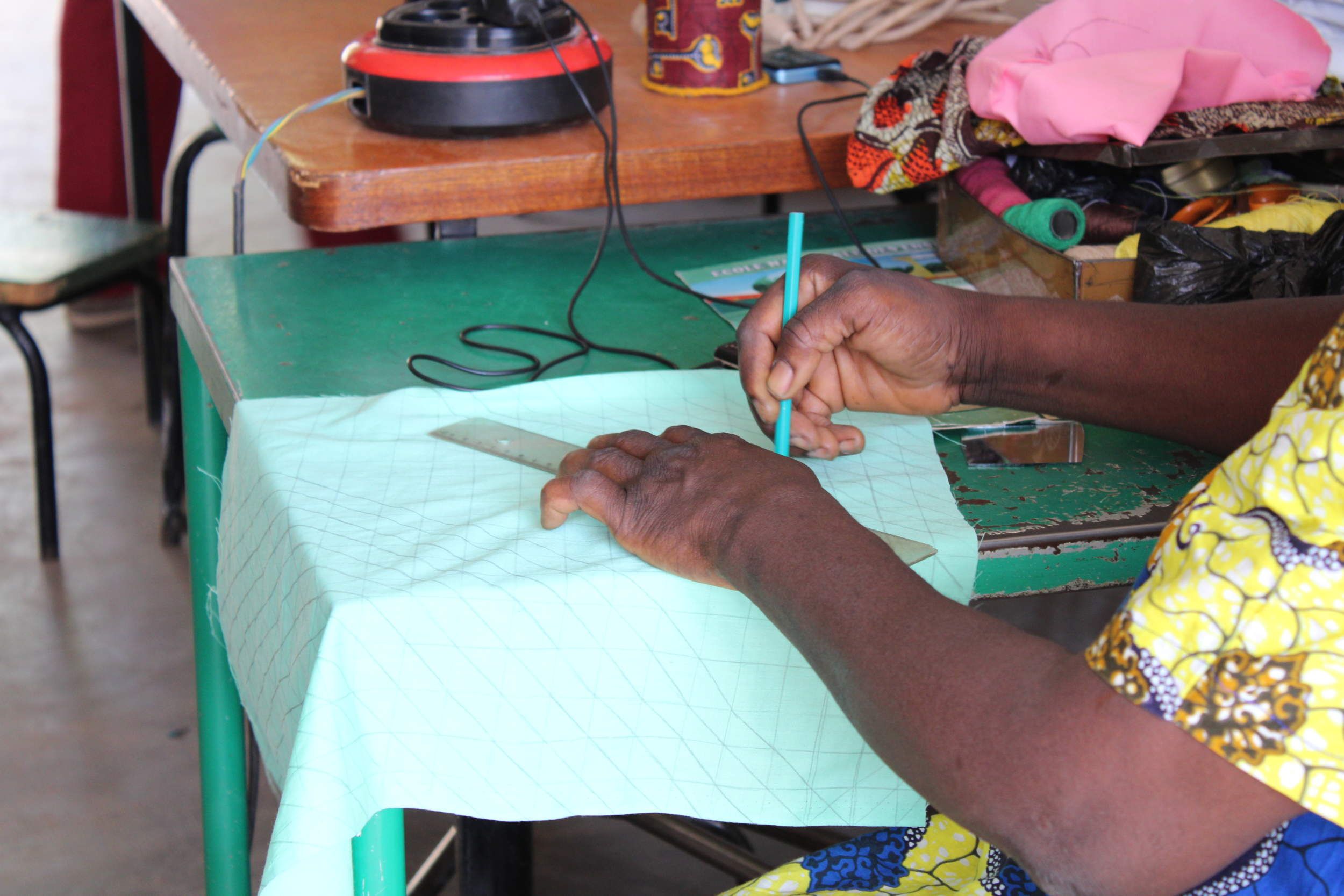 Les jeunes filles reçoivent une formation de coupe couture. La réalisation de ces produits artisanaux est adaptée à chaque handicap.