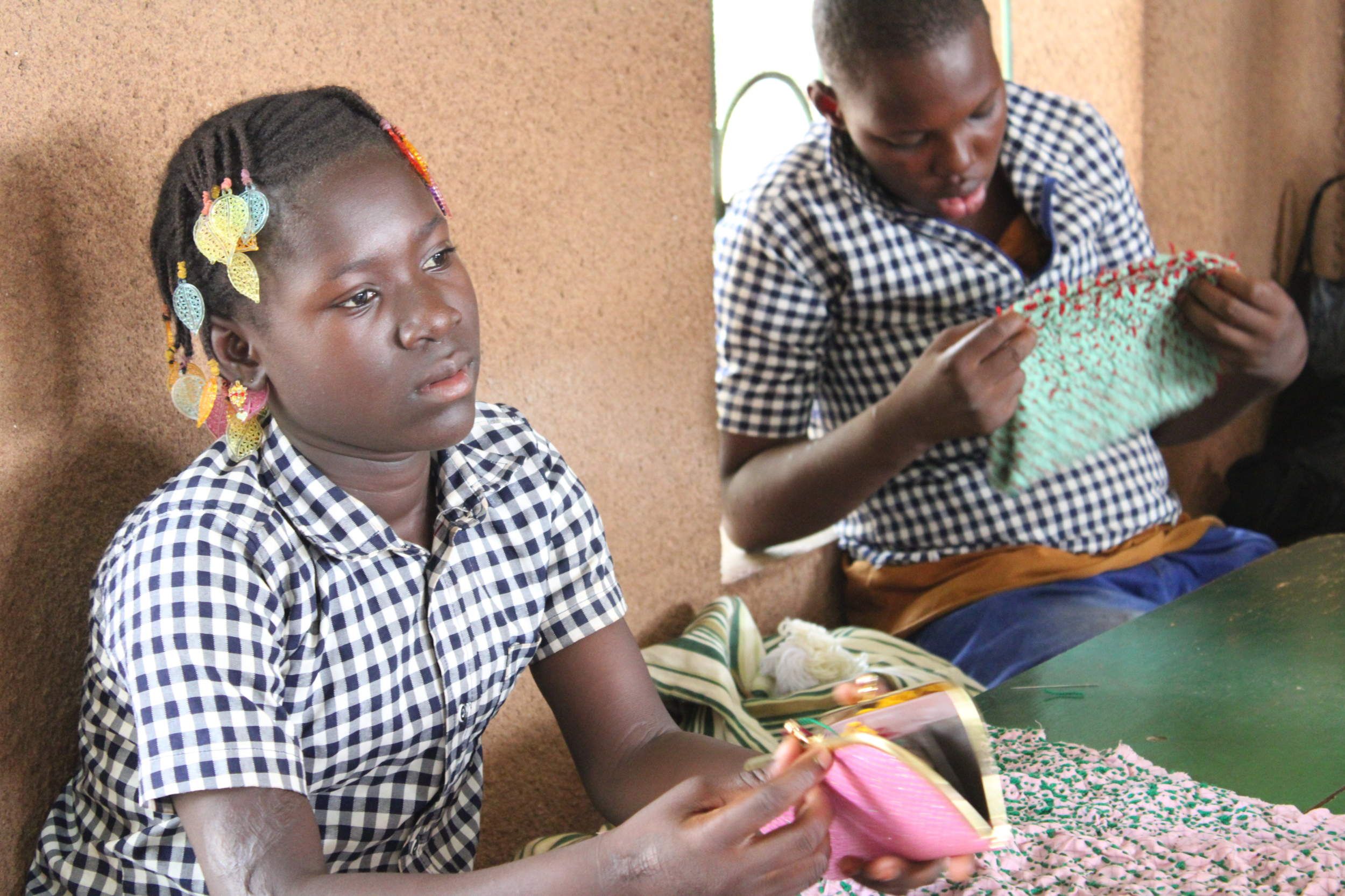 Aujourd’hui, le centre accueille 35 jeunes handicapés physiques, mentaux et auditifs, âgés de 15 à 25 ans et les forme, pendant trois ans, aux métiers d’artisanat : tissage, couture, coupe, création de bijoux, broderie, tricot-crochet. « Les jeunes sont tous issus de familles très pauvres avec moins d’un euro par jour pour se nourrir », explique Agnès, « ces difficultés financières sont un frein à la prise en charge des enfants handicapés. Les familles n’ont pas les moyens d’assumer leurs enfants. Ils ne sont ni soignés ni scolarisés. » Au Burkina Faso, une écrasante majorité des enfants, âgés de 6 à 18 ans, n’ont pas accès à l’éducation. « Il n’existe pas d’infrastructures adaptées au handicap dans les écoles », explique Agnès.