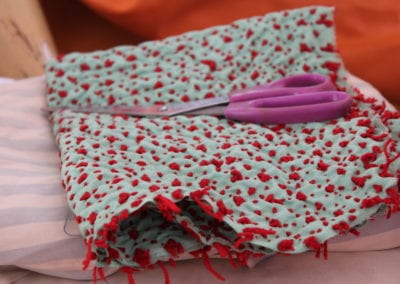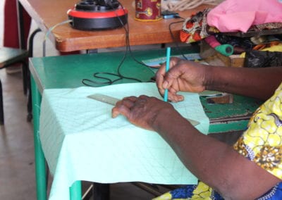 Les jeunes filles reçoivent une formation de coupe couture. La réalisation de ces produits artisanaux est adaptée à chaque handicap.
