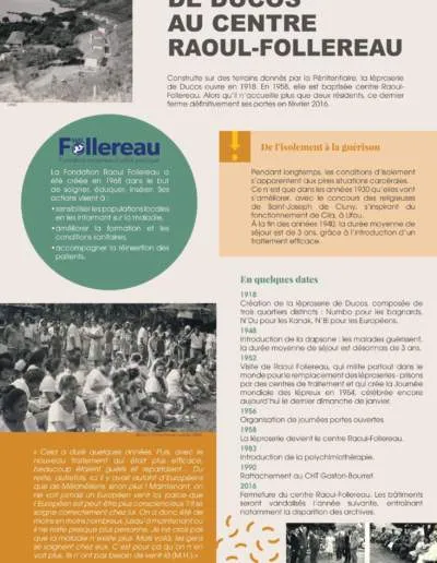 Au milieu du XXème siècle, les conditions de traitement s’améliorent pour les malades, avec l’introduction d’un antibiotique, la dapsone. C’est également à cette époque que débute l’histoire de la Fondation avec la Nouvelle-Calédonie. En 1952, Raoul Follereau se rend dans l’archipel et découvre la léproserie de Ducos, ancien pénitencier devenu léproserie en 1918 où sont rassemblés et enfermés les malades. Six ans plus tard, la léproserie est devenue un centre de traitement : le Centre Raoul Follereau (CRF). En 1988, frère Fernand Davoine – alors vice-président de l’association Raoul Follereau – reçoit le témoignage poignant d’anciens malades du CRF marqués par leur rencontre avec Raoul Follereau :