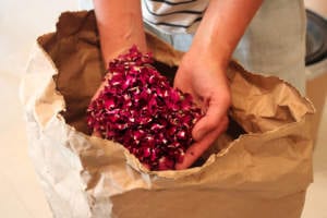 Les pétales de roses sont l’ingrédient phare des tisanes de Chloé. © Marie-Charlotte Noulens