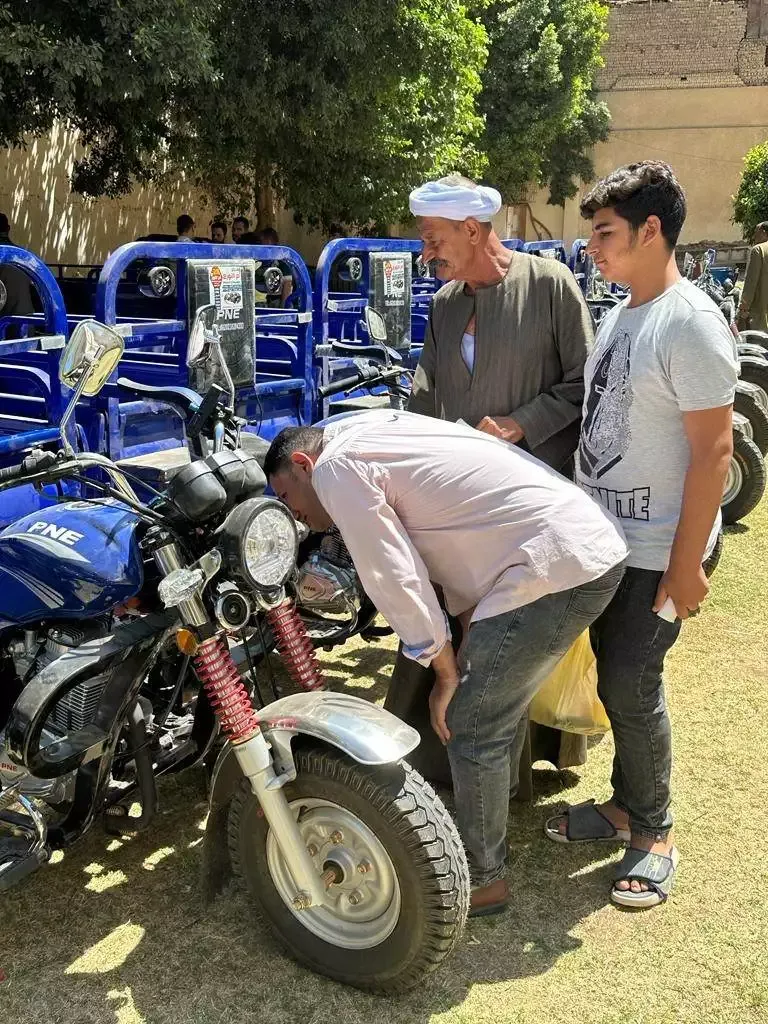 Les tricycles et touktouks qu’ont reçu les familles du diocèse de Sohag. ©Roger Khaïrallah