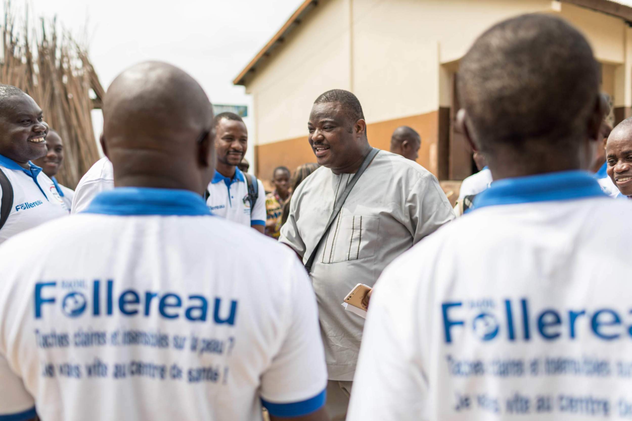 - Le docteur Christian Johnson, conseiller médical de la Fondation Raoul Follereau et président de l’ILA, échange avec les agents communautaires.