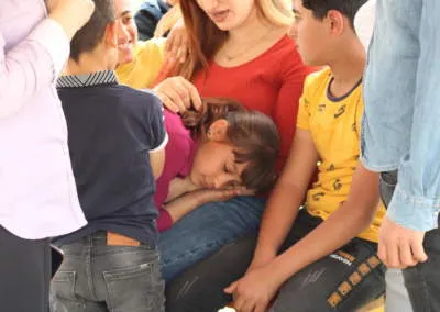 Au loin, la guerre a laissé des traces bien visibles dans le paysage. Aux pieds des montagnes, des tentes blanches s’étendent à perte de vue, contrastant avec la douceur des champs de blé verts alentours. Il existe encore 16 camps qui accueillent des réfugiés yézidis parmi lesquels se trouve celui de la ville de Shariya. L’orphelinat est à quelques mètres. Derrière un grillage, une trentaine d’enfants jouent avec grand bruit. Balançoires, toboggan, préau… Tout donne l’impression d’être dans un centre de loisirs classique. Sous le toboggan, Avan discute doucement avec un jeune garçon. Visiblement il se confie à elle. « C’est important de recréer un climat familial ou chacun puisse grandir en confiance. Il n’est pas rare qu’ils m’appellent ‘’maman’’ », souligne la jeune femme avec un sourire timide. Pour cela, l’orphelinat Juveen Charity loue une maison en face de ses locaux. « Des mamans de Shariya se relaient pour assurer une présence permanente.