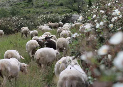 « Je renouvelle chaque année un peu de mon troupeau en gardant une trentaine d’agnelles, des femelles âgées d’un an. » Aux yeux de Véronique, les brebis sont très expressives. « Je vois tout de suite quand quelque chose ne va pas : les yeux, le regard, la position des oreilles… Je suis très attentive à leurs besoins et surtout leur instinct ! Les brebis décident quand elles veulent rentrer à la bergerie. » Une brebis mange en moyenne cinq heures par jour pour être rassasiée. Il est important de les faire paître dans des zones riches en végétation variée. « Nous sommes en période de saillies. Les brebis doivent avoir une bonne alimentation pour produire du lait », souligne Véronique tandis que son troupeau rentre docilement dans le tunnel pour la nuit avec les béliers, le ventre gonflé de bonne herbe, sous le regard impérieux du Patou, un chien des Pyrénées dressé pour garder les brebis. Les agneaux naîtront à partir du mois de novembre, au retour de l’estive. « Mon troupeau partira en camion à 2000 mètres d’altitude rejoindre quatre autres troupeaux pour l’été et redescendront pour mettre bas. » Les agneaux sont ensuite vendus pour leur viande avec le label « El Xai » (agneaux catalans) en coopérative à l’âge de trois mois. « Je vends en moyenne 100 € un agneau. Mais le prix n’a pas beaucoup augmenté en trente ans… », déplore Véronique qui peine à boucler ses fins de mois malgré un travail acharné.