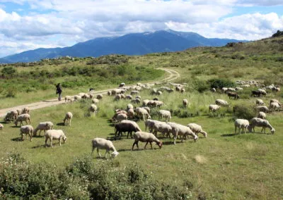 Sur les hauteurs des Pyrénées orientales, le ciel se teinte de couleurs mordorées. Sur un piton rocheux, une silhouette se découpe dans l’horizon. Appuyée sur son bâton de berger, emmitouflée dans une polaire militaire, Véronique scrute les larges buissons de cistes dans lesquels paît paisiblement son troupeau de brebis. La période des transhumances va bientôt toucher à sa fin. Tradition séculaire, la transhumance est une migration des troupeaux des pâturages d’hivers vers les pâturages d’été, en altitude, afin de protéger les bêtes de la chaleur. Elle se fait en trois paliers entre la fin du mois de mars et le mois de juin. Le deuxième palier est à 800 mètres d’altitude et le dernier se situe 1 000 mètres plus haut.