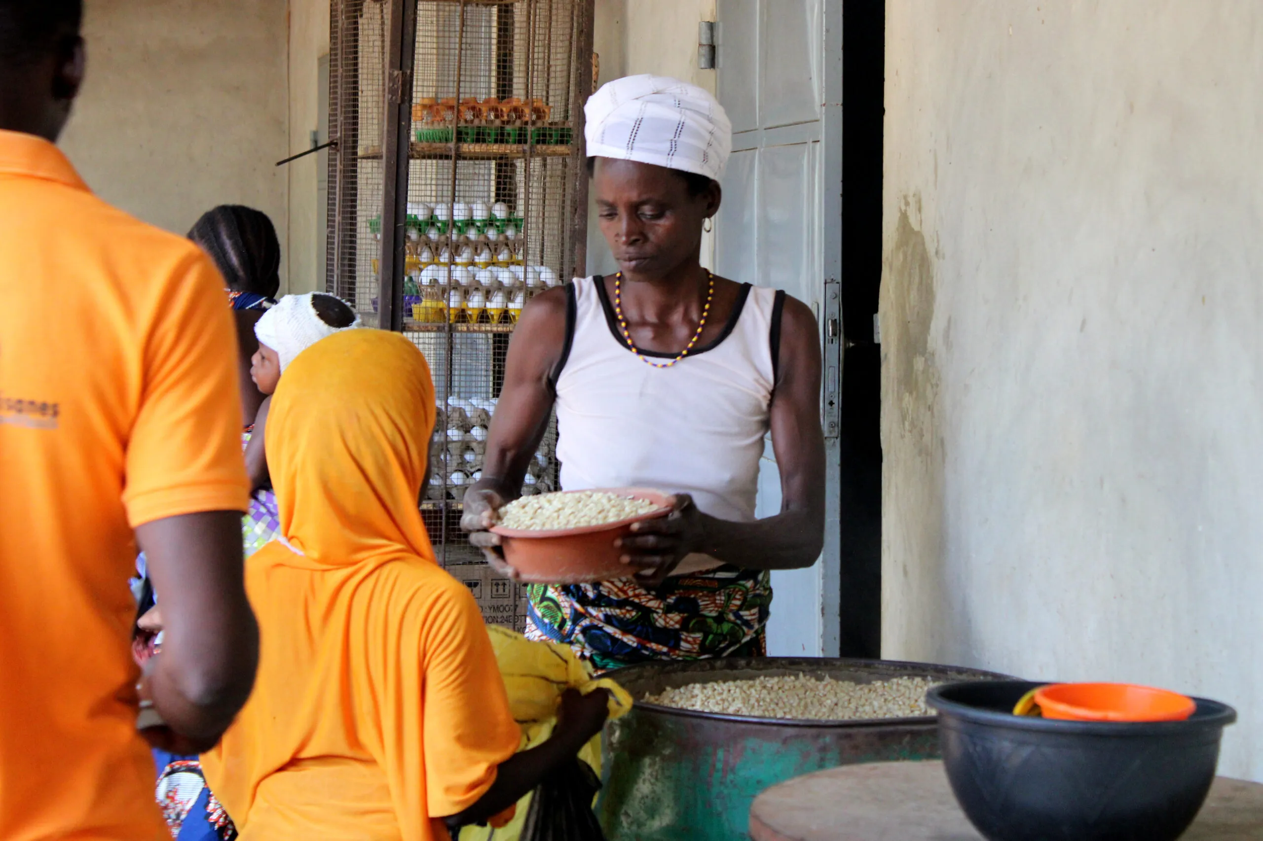 Au centre de Davougon, au Bénin, une distribution de vivres pour la préparation des repas des patients. ©Marie-Capucine Gaitte