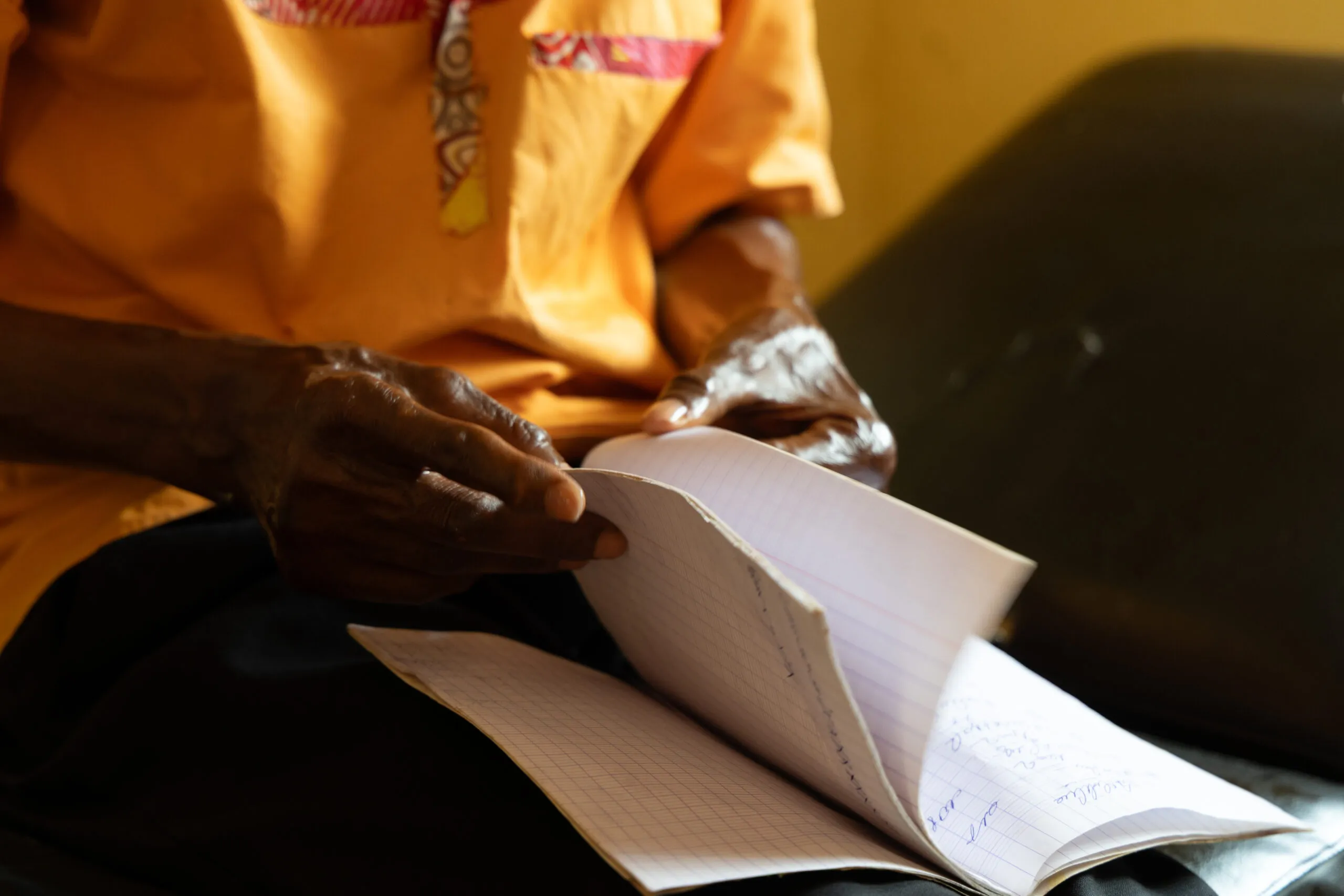 Tourner les pages d’un cahier : une tâche ardue lorsque les nerfs des mains sont atteints par la lèpre. ©Marie-Capucine Gaitte