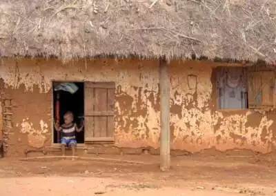 Le long de la route, un centre de santé de base forme un repère pour Sœur Mauricia qui indique bientôt la piste à suivre. Un orage a éclaté dans la nuit et gorgé d’eau les sillons de terre rouge. Par trois fois les véhicules doivent s’arrêter, menaçant de s’embourber : un quotidien pour ces soignants qui parcourent le pays en toute saison. Leur destination apparaît au terme d’un long détour. Juché sur une colline, le village d’Andranomiditra rassemble un millier d’habitants réunis dans plusieurs hameaux. Comme 80% de la population malgache, les habitants y vivent de l’agriculture (le manioc, le maïs) et les conditions de vie sont précaires, les cases faites de terre et de branchages.
