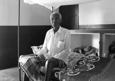 Il est 15h lorsque Sœur Mauricia rentre au dispensaire. Le déjeuner attendra : d’un pas léger et le rire communicatif, faisant fi de la fatigue, elle se dirige vers les chambres des malades. « Rendre le moral aux malades, c’est très important, le premier médicament qu’on leur donne, c’est le courage et des explications sur la lèpre » souligne-t-elle. Le centre de Port-Bergé peut hospitaliser cinq malades de la lèpre ; ceux-ci sont soignés là en raison de complications liées à la maladie ou au traitement. Dans une chambre, un homme est assis sur son lit, le pied relevé. Son regard s’éclaire en apercevant la soignante. « Je suis allée visiter ce monsieur il y a trois semaines au village. Il prenait bien son traitement mais ne pouvait plus se déplacer et restait toute la journée dans sa case à cause d’un mal perforant plantaire. Je lui ai proposé de m’accompagner au centre, il faudra deux mois pour soigner son pied. » Sœur Mauricia peut passer des nuits entières à veiller les malades souffrants, tel cet autre patient arrivé avec une forte fièvre et des nodules causés par la lèpre. Les frais d’hospitalisation et de soin sont financés par la Fondation Raoul Follereau.