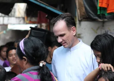 L’amour est la clef de voûte de l’action de la Fondation ANAK-Tnk. « Il est facile de donner un toit et de la nourriture », souligne le père Dauchez, « beaucoup d’autres associations à Manille font cela. Mais aimer… c’est autre chose. Notre rôle est de faire comprendre à l’enfant qu’il est digne d’aimer et d’être aimé. L’amour est un terreau fertile. » Dans son petit bureau, à quelques pas du drop in center boys, le père Dauchez, directeur de la fondation, nous fait part de son abandon total à la Providence. « Plus on est dépassé, plus on peut agir. Nous avons une vocation de consolateur. La compassion, qui signifie souffrir avec l’autre, est un mystère inexplicable. Elle est la colonne vertébrale de ce que l’on vit à la fondation. » Quelques instant plus tard, de gros et profonds sanglots résonnent sous l’auvent du garage. Un petit garçon du drop in center est en larmes. Le père Dauchez discute avec lui pendant une heure dans son bureau puis le raccompagne vers les autres enfants pour le déjeuner. « Il est impossible de panser les blessures de ces enfants. Il m’arrive de ne pas avoir de réponse à leurs apporter mais nous ne devons jamais les laisser dans l’illusion car ils ne pourront jamais se reconstruire. La majorité de ces enfants ne croit plus au refuge d’un foyer et la confiance envers les adultes est très longue à retrouver. » Depuis plus de vingt ans, le père Dauchez a accompagné des milliers d’enfants. Au fil des années, il a été le témoin de belles guérisons intérieures. « Le premier miracle est le retour à l’innocence. Quand un enfant retrouve le sourire, le coeur est prêt à s’ouvrir. Le sourire est la porte du coeur. Le second miracle est le pardon. Il n’y a pas de guérison sans pardon. Se pardonner à eux-mêmes puis à ceux qui les ont fait souffrir. »