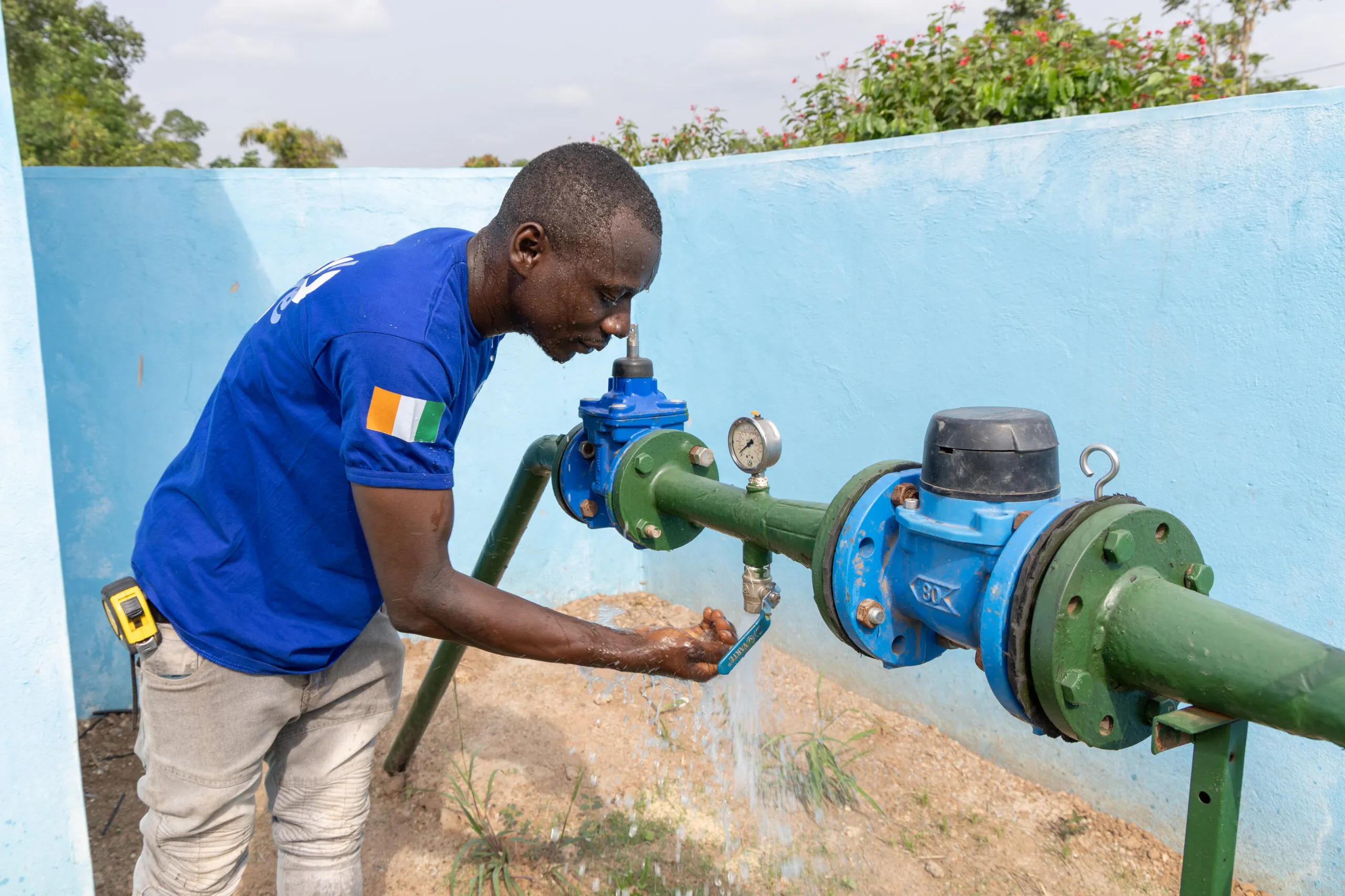 Adama Sylla est chargé des travaux d’eau, hygiène et assainissement pour la Fondation Raoul Follereau, ici dans le district de Soubré, en Côte d’Ivoire. ©MC Gaitte