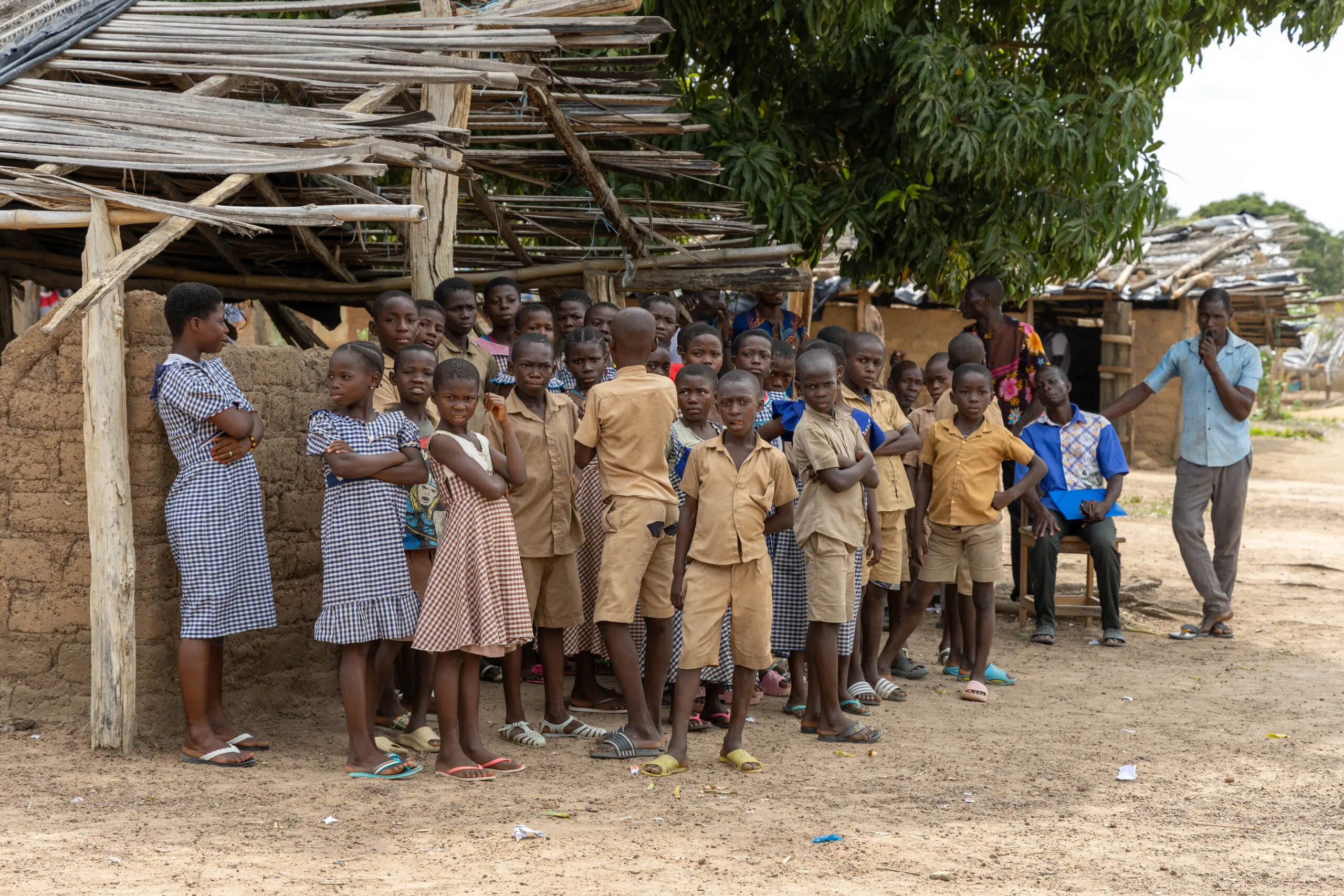 Le projet comprend un dépistage des maladies de peau, dont la lèpre et les autres MTN, ici dans la petite école d’Assawrékro. ©MC Gaitte