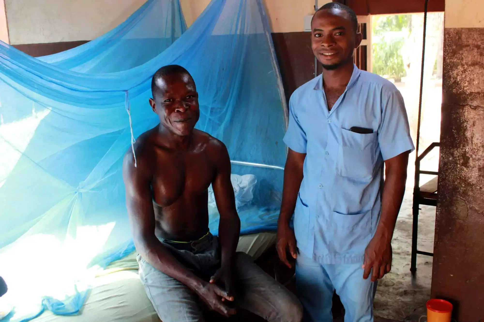 Saturnin tisse des liens de confiance avec chacun des malades de la lèpre hospitalisés à Davougon. ©Marie-Capucine Gaitte